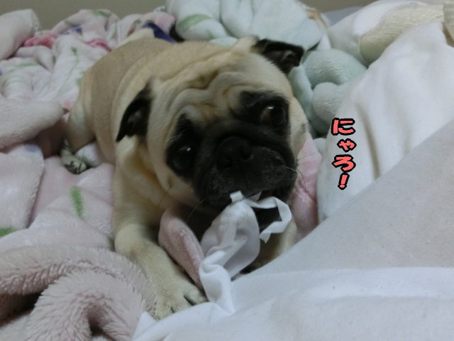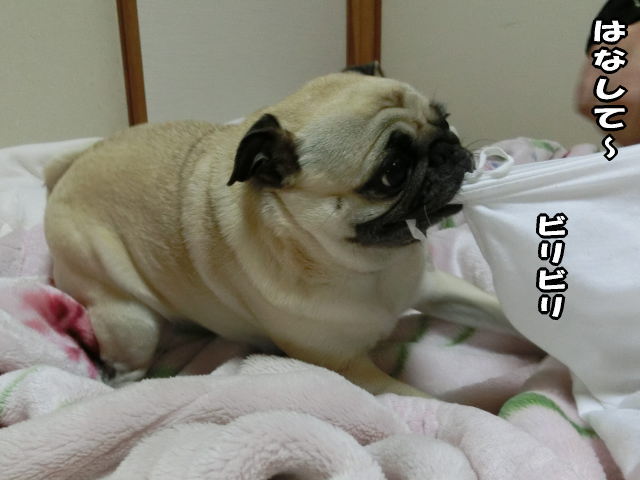 怒ったはなちゃんは、足早に布団へ向かいます。