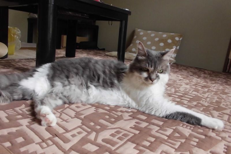 猫は暑さに強いけど、長毛の銀次は暑がりだからクーラーが待ち遠しいかな