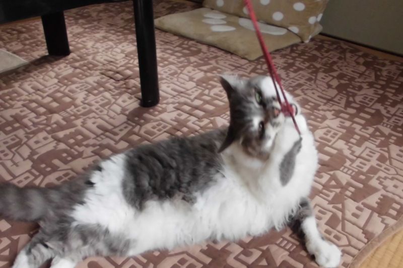 紐にじゃれてるけど、寝たまま動かず