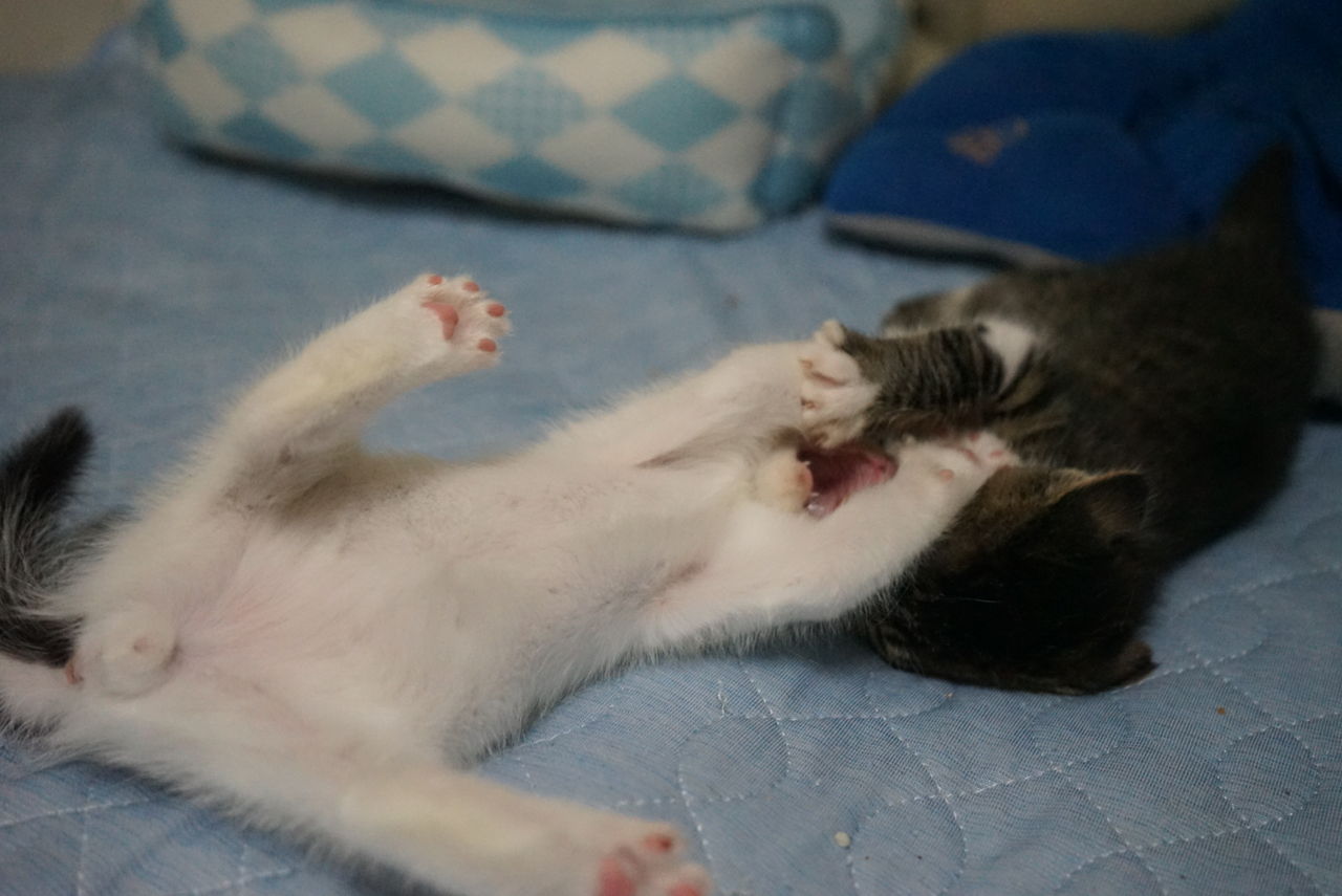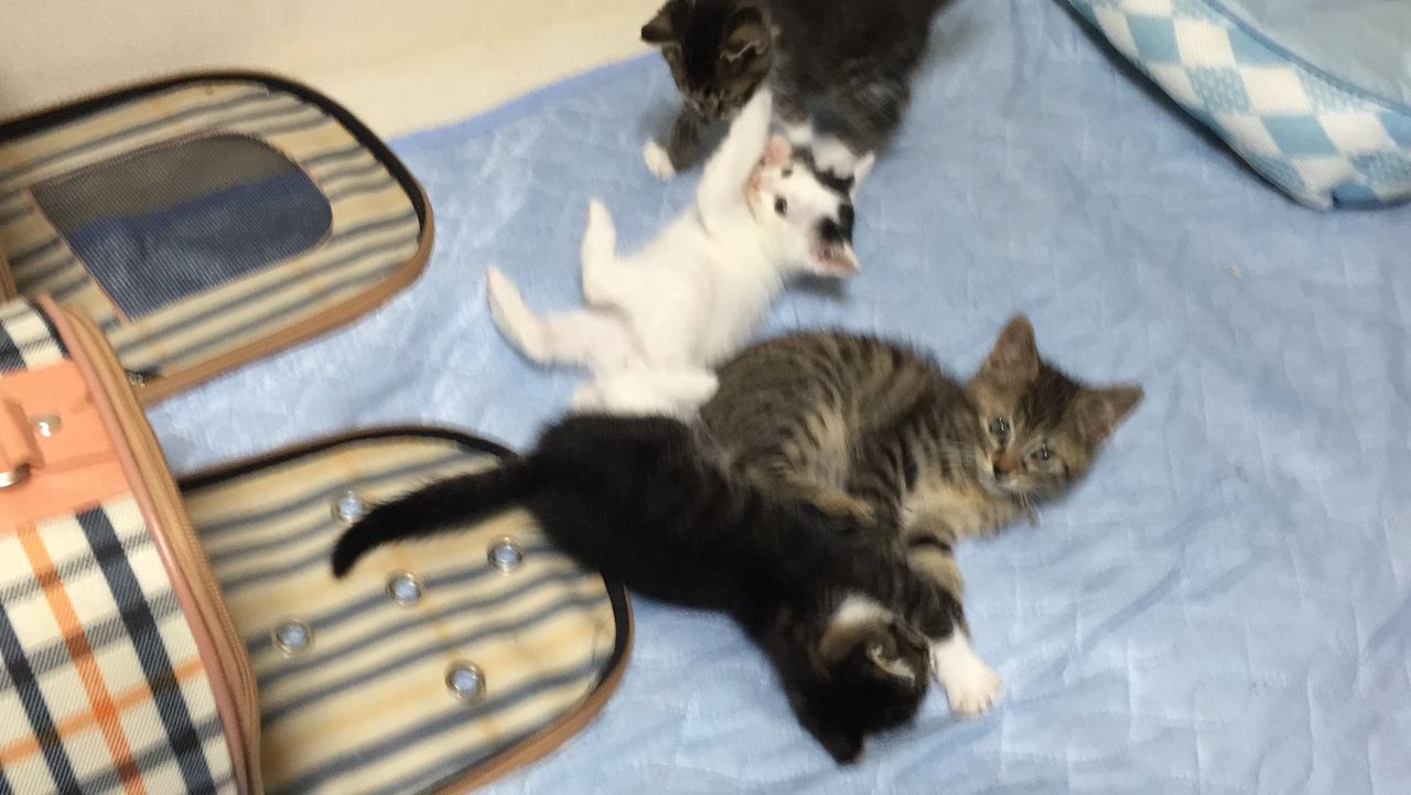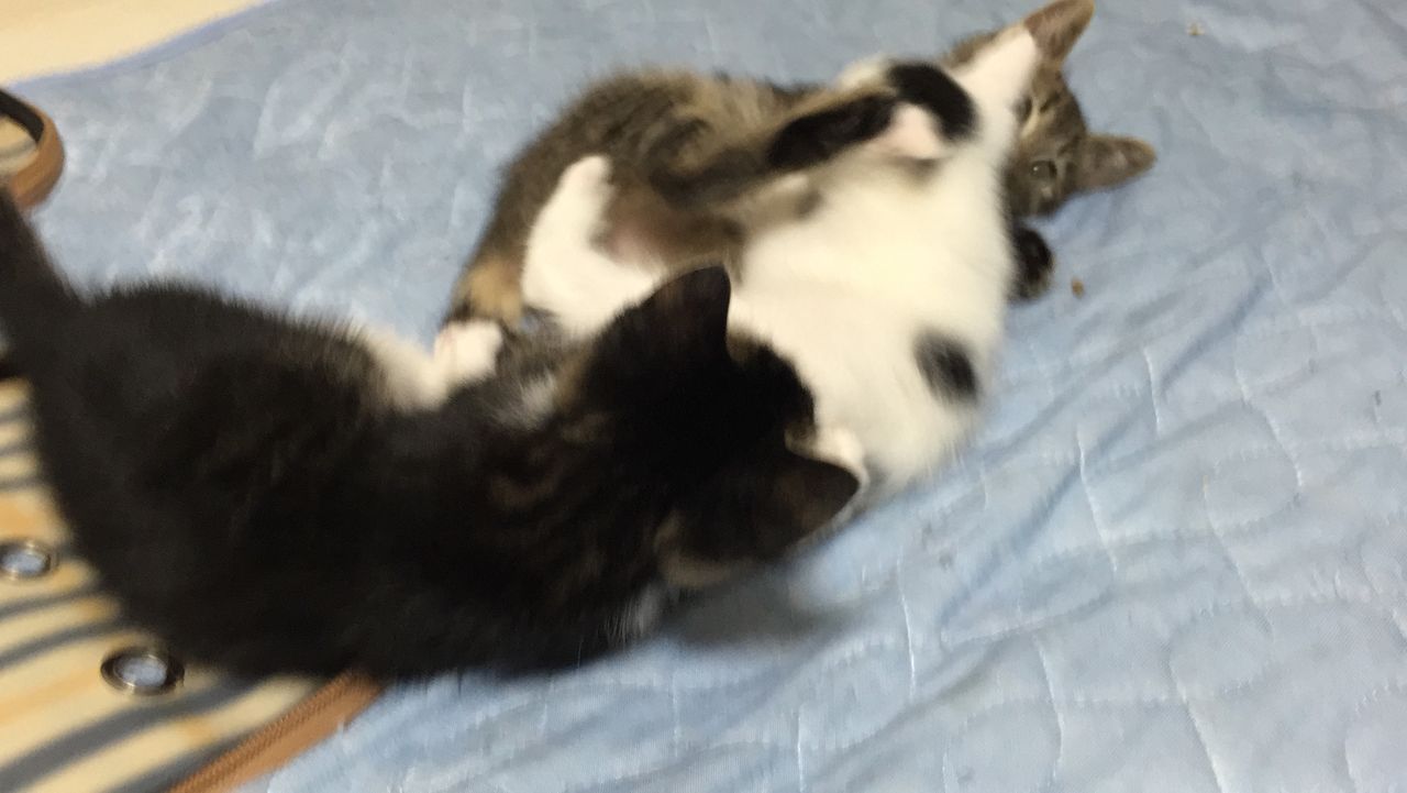 3匹が離れた時にどういう変化を起こすかが懸念ではあるが、甘え先や遊び相手が里親さんに問題なくうつるだろうというのは自分への甘え方を見ても解る。
