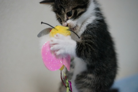 ここ二三日でおもちゃにも反応をするようになった子猫たち。