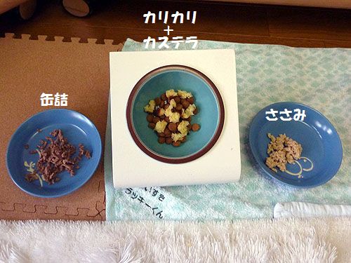 カステラを追加しても,カステラだけ食べて,カリカリは残します。