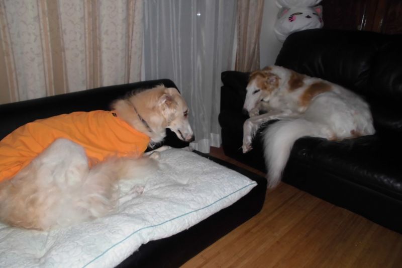 着せたらすぐにしょんぼりとソファーに倒れこむように座った