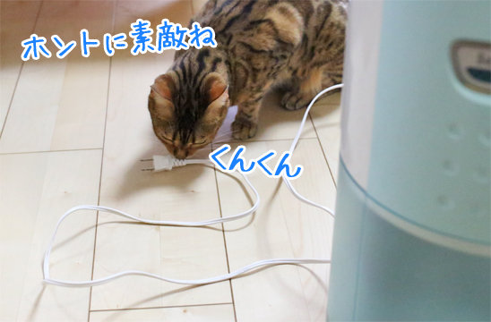 猫が除湿機がスゴイとか分かる訳ない!モナーは、はなっから除湿機のコンセント狙いで近づいてきたのでした
