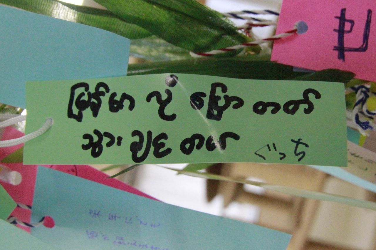 「にゃに語これ?」茶々もビックリ。きっとビルマ語かな??願いはぐっちくんにしかわからないですね~~気になる。