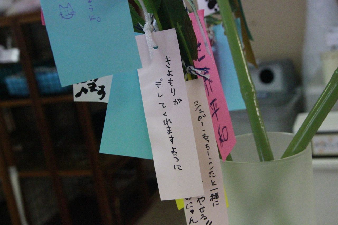ねころびにある笹も沢山の願いが込められた短冊でいっぱいになりました♪