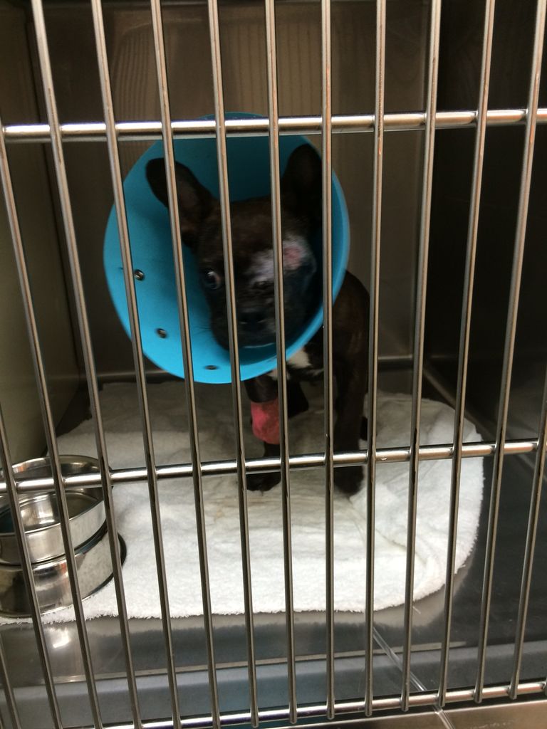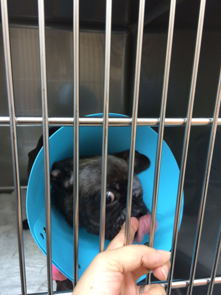 ケージで 眼球を擦り付けてしまい 眼球摘出手術になったフレブル君です 一時は容態が悪く 輸血もして、回復が心配されましたが今は 病院で元気になって居ます 食欲もあり もうすぐ退院できそうですね。 まぁ 次々と 病院通いで 医療費が うなぎ登りです。 どうぞ、皆様の温かいご支援、ご協力をお願い致します m(__)m