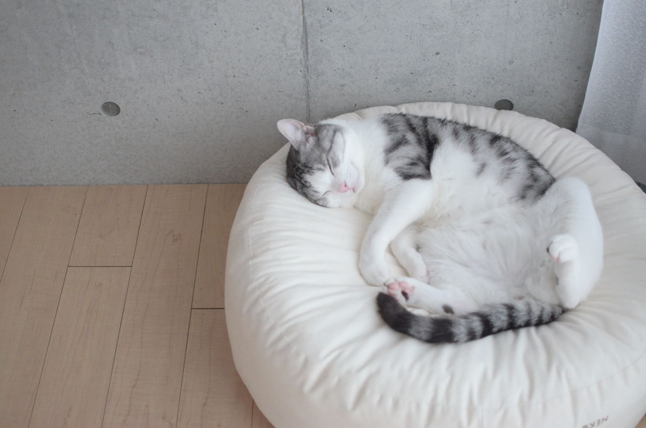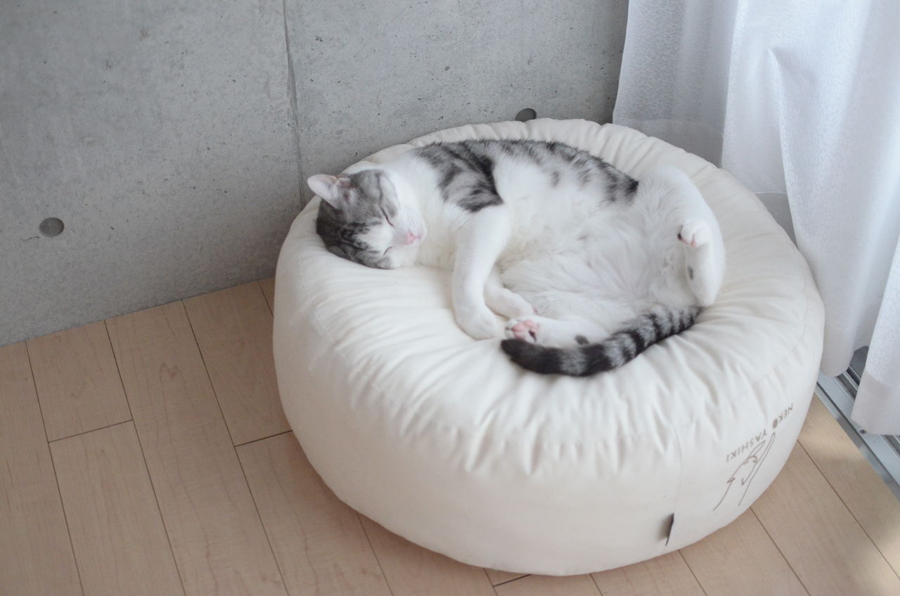 ( ・ω・)<リクちゃんは大好きなマシュマロクッションでお昼ね。