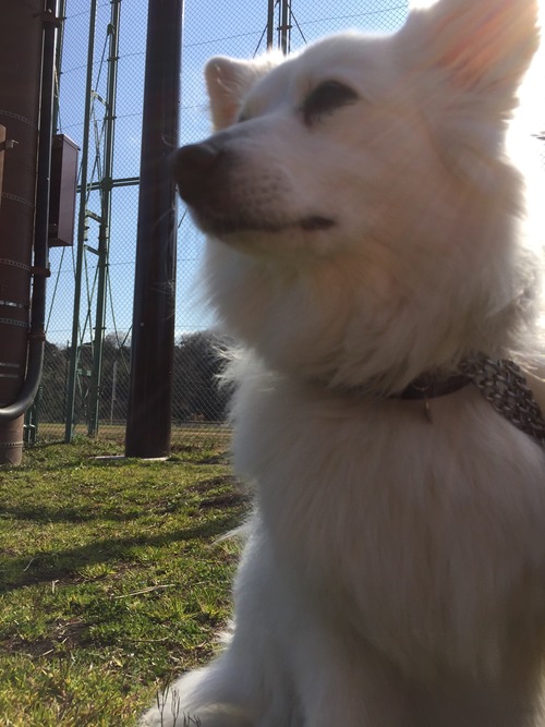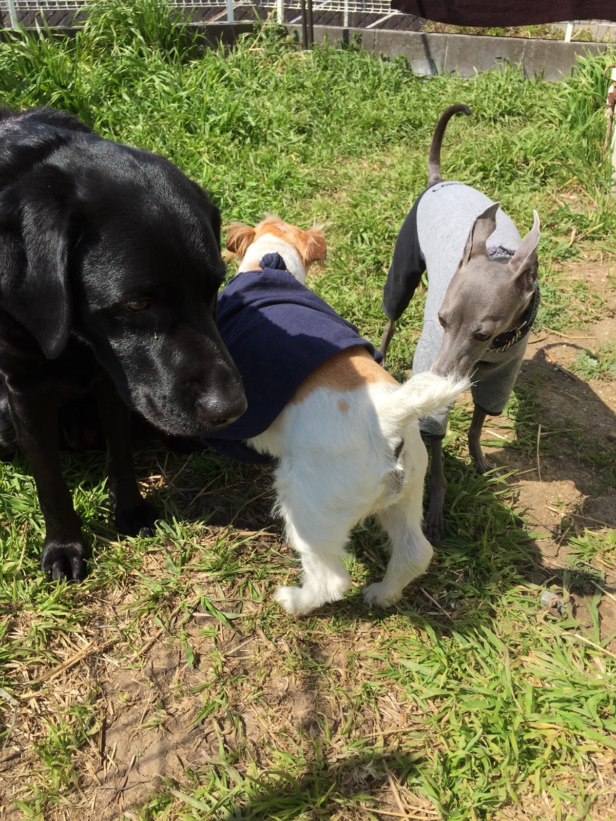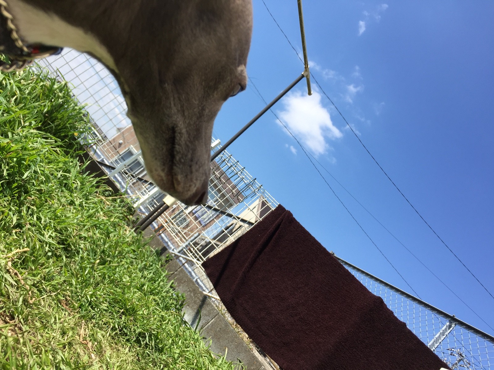ペルは干してあるココの毛布がとても気になる様子でした…笑っ