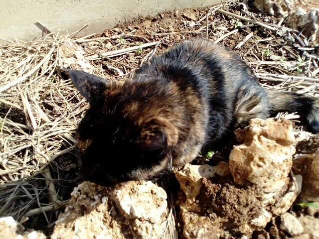 小さな花壇を囲った石にスリスリしてるなぁとほほえましく見ていたら、花壇に入っておくつろぎに。