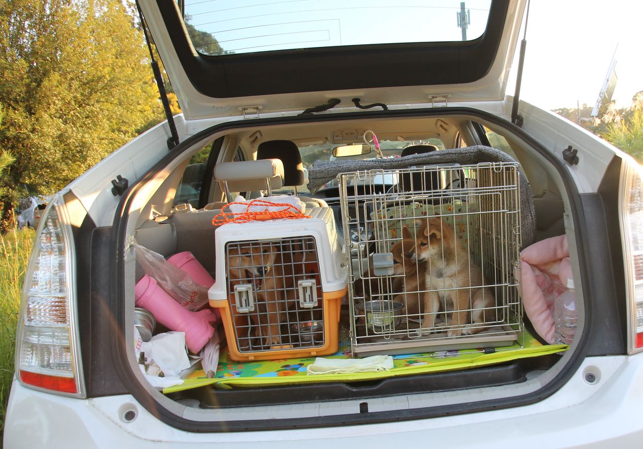 花だけが車酔いしてべちょべちょ・・・なのは一緒にケージに入ってるオニとにこ