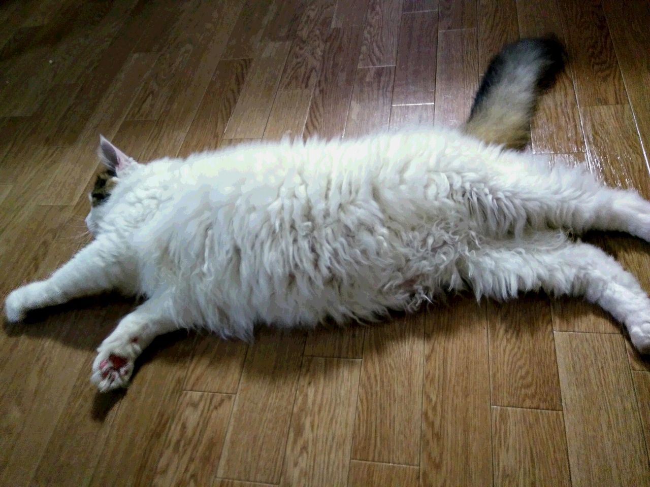 当たり前のようにお布団の真ん中で転がっていたり、ご飯の催促したりしてのびのび過ごしてます。