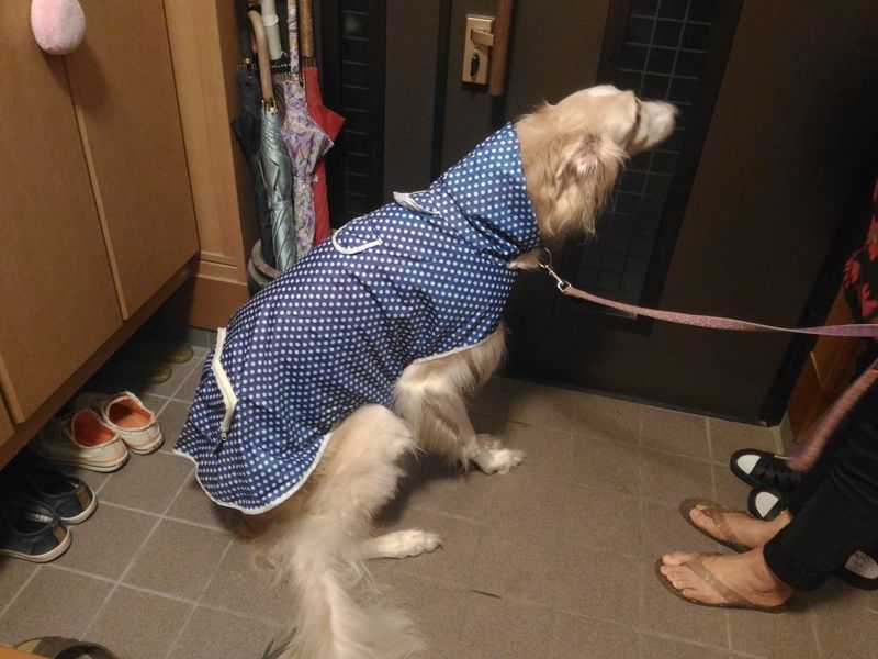 レインコートを着せられたら、玄関にへたり込んでしまった
