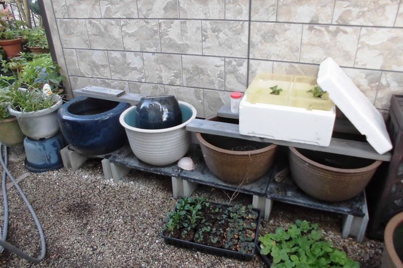 鉢の水が凍って割れたことがあるので、水を抜きました