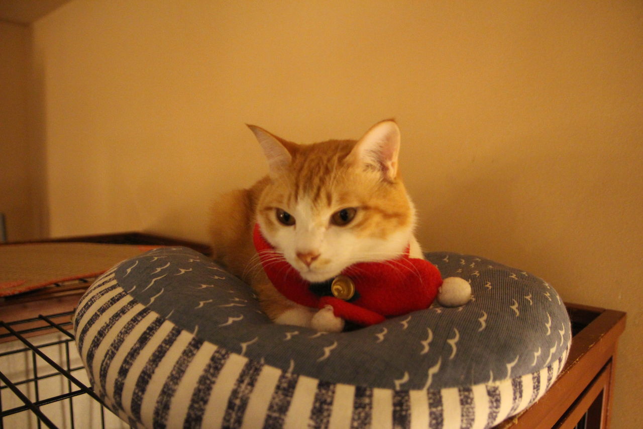 やまちゃんはマフラーを着けてぬくぬくと寝ています。