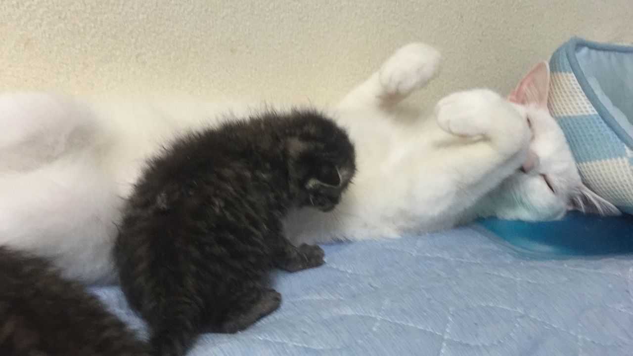 何で麿白先生はいつも子猫に吸われるんでしょうか。