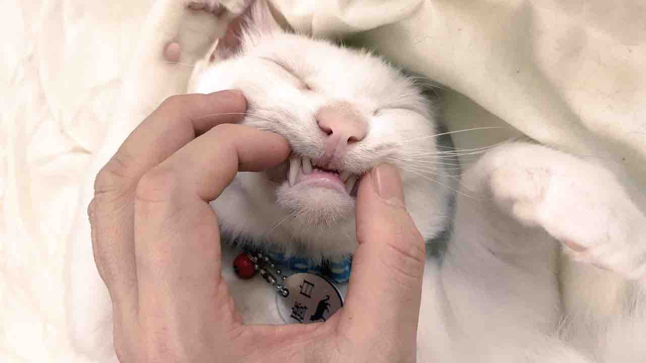 全部の歯がまだまだきれいです。バテやすい麿白先生ですが腔内のトラブルは今の所ありません。