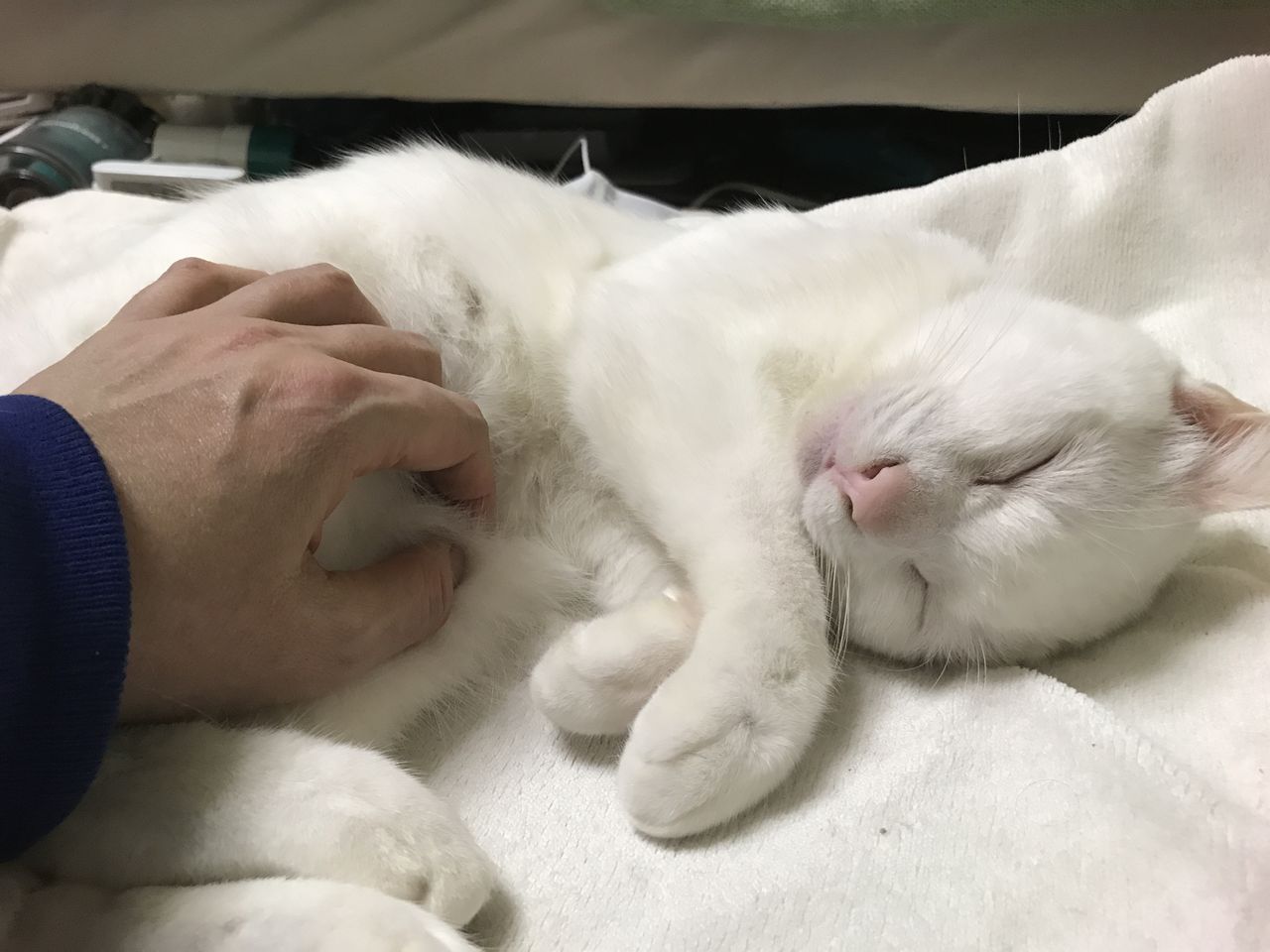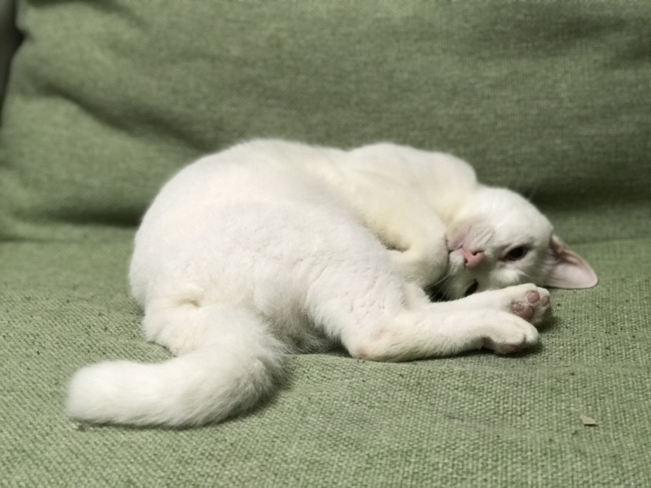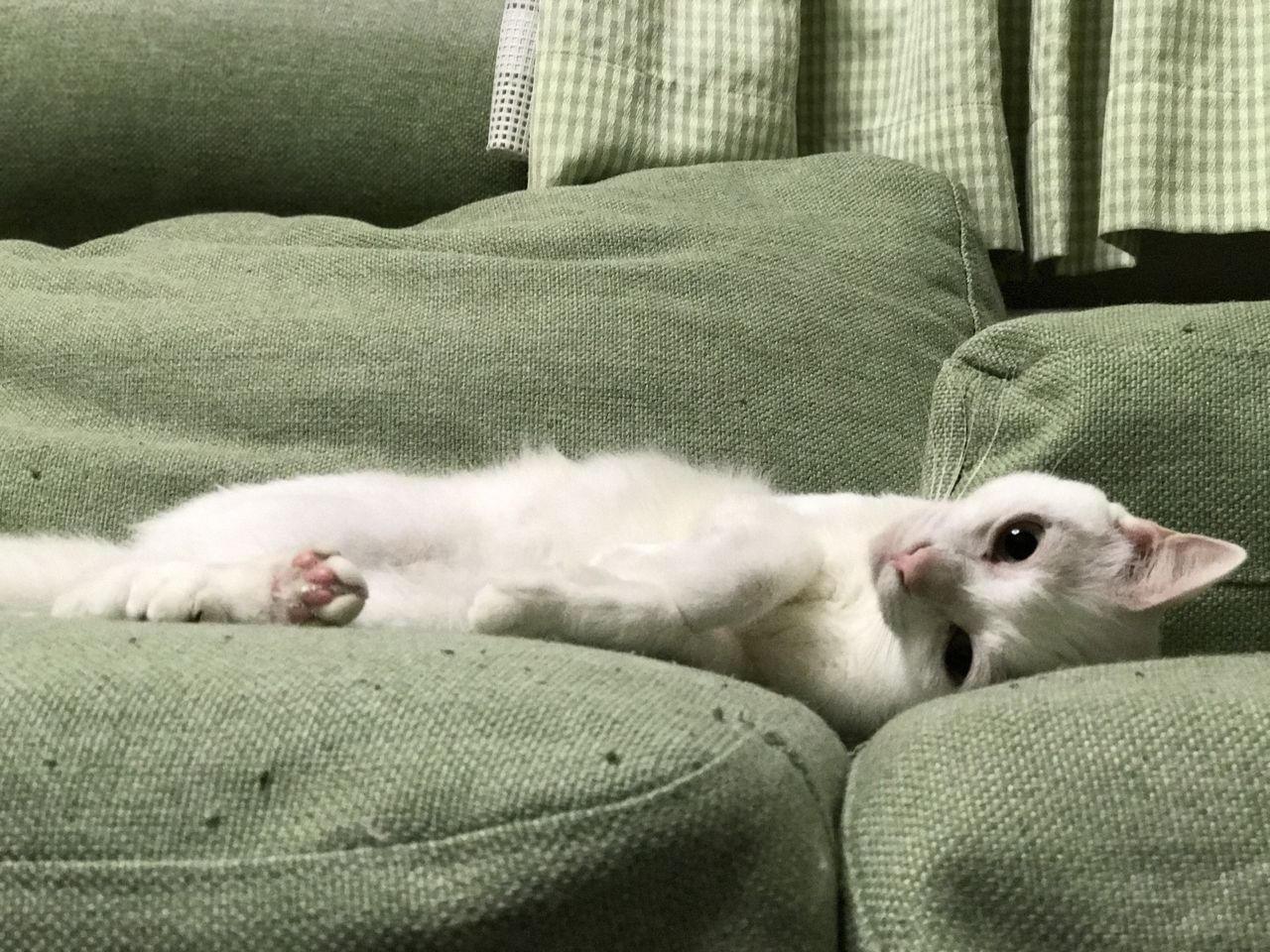 別角度からだとこんな。お腹や顎下をモフれるポジションを差し出してくる感じです。