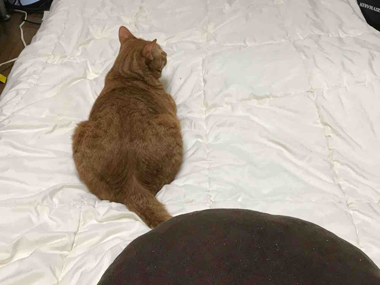 背中を向けて甘え待ちしている所。