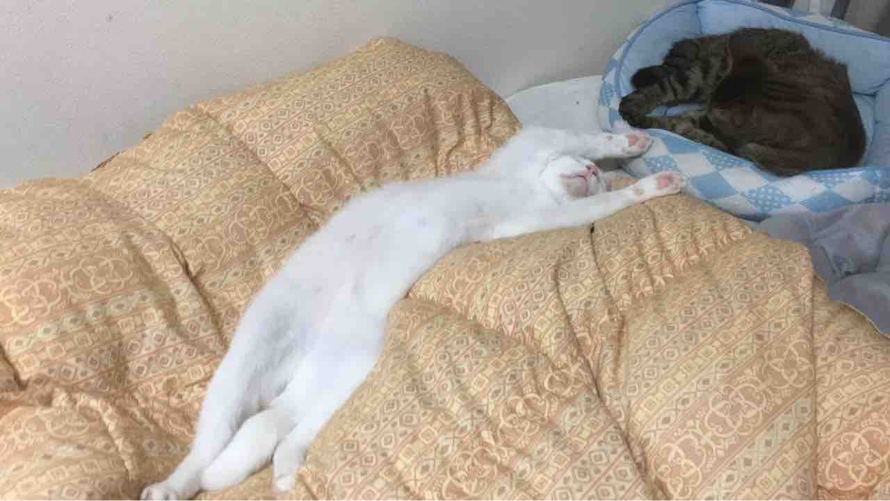 たまに平べったくなる麿白先生。 猫は液体といいますが、麿白先生の場合は厚みがかなりへるような。 これはちょっと持ち直してますが溶解してます。 よいしょっと。 空気が入って膨らんできた状態。 でも、空気の入り方の按配が悪かったか。 たまにこんな風にもバグってました。 ランキングに参加しています。1日1クリック、なにとぞ おねがいしますm(_ _)m