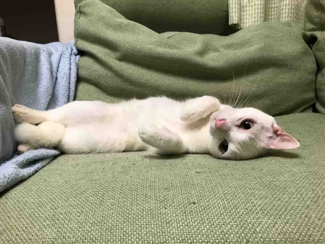 よくソファーから落ちてますが下には羽毛布団なので安心。