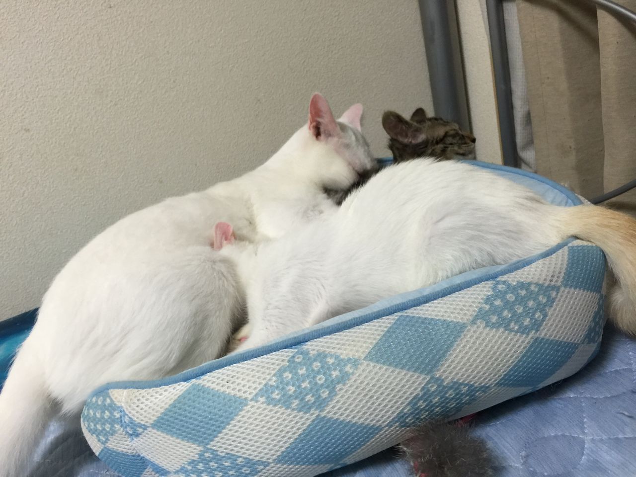 それでも同じ猫ベッドで麿白先生のおっぱいを吸いに行く琥白さん。