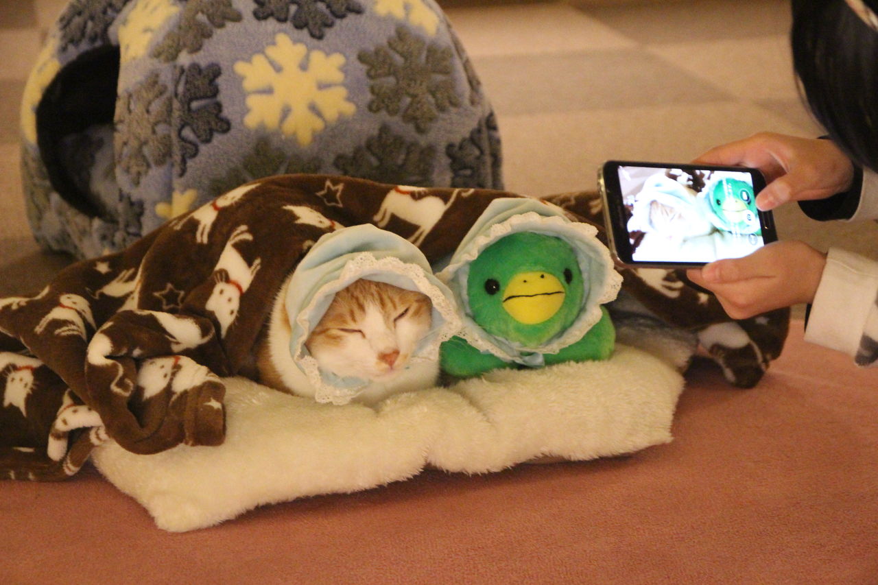 「いやー最近はさみぃですな、大和殿」 「……zzz」 「おや、写真ですぞ、キメ顔ですぞ大和殿」 「……zzz」 「あんなところにネズミさんがッ!!!」 「チャンスですぞ大和殿ッ!捕まえるンですぞ!!」 「……zzz」 「ネズミさん、どっか言ってしまったですなぁ、大和殿」 「……zzz」 Cat cafeねころび スタッフぐっち