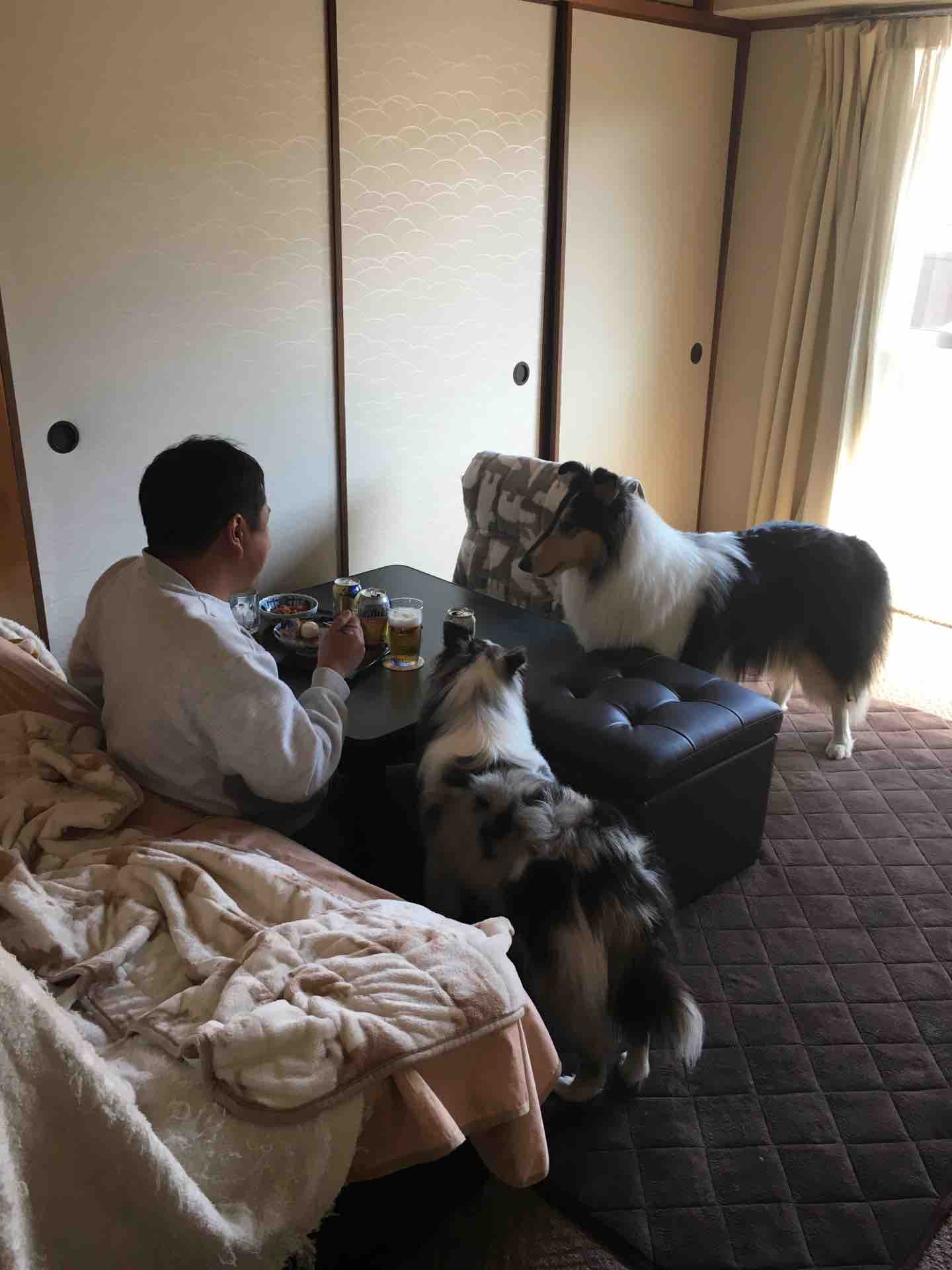 休日私のパソコンタイムを邪魔しないよう、隣室で団欒する父子。