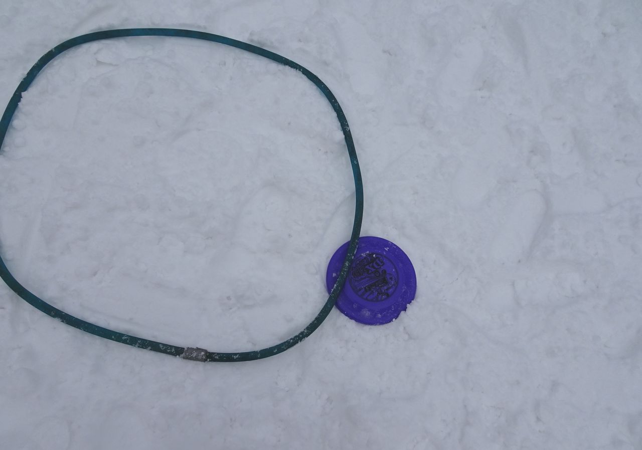 コロパパがディスクを投げて、着地点に輪っかを置き