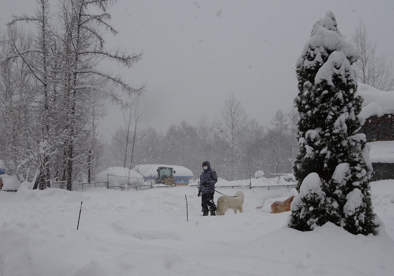 大雪の中