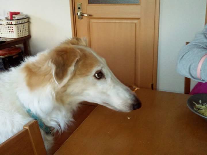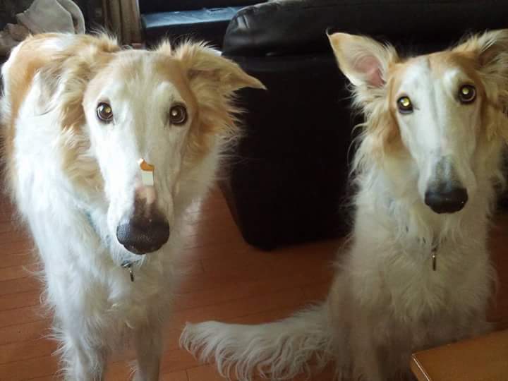 角が生えた 朝のキッチンでユリ母がテープを剥がしていた 邪魔をするからカイ君の鼻にテープを貼り付けた そんな些細なことは全く気にならない様子のカイ君 朝ごはんを食べるカイ父は彼らに大人気です カイ君はいつも食パンの耳を貰うけど、ユリさんは貰った事はないのに(笑) カイ父の食事が終わるとユリ母の前で真剣な顔で待ちます 朝のひとときでした ↓ボルゾイランキング参加中↓ にほんブログ村