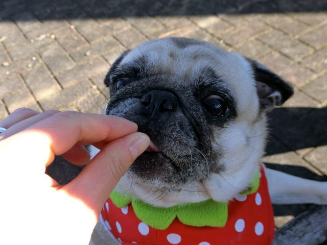 おやつタイムの時も楽しませてくれるはなちゃんです。 いやいや、一口では無理だから。 (´▽`) あざらしちゃんみたい。(^∀^) よく見るボーロタイムの様子。 いちいち いい顔しています。( ̄m ̄* )