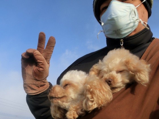 今日は晴れてるけど、粉雪と北風が強くて寒~いです。 皆、防寒やってますよ。 やっぱり、お部屋の中が暖かだと思うんだけど、はたしてチビちゃんたちはどう思ってるのかな? 夕方は、居合の自主練。 試合形式で3回抜いて、先生方に悪い所を抽出してもらいました。 来週、後2回の稽古で修正します。