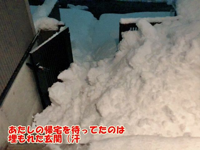 屋根雪落ちて埋もれた玄関見ただけで疲れるし・・