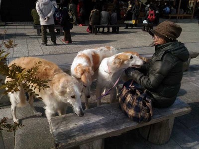 内宮では車内で留守番のボルゾイたちも、外宮参道を楽しんだ