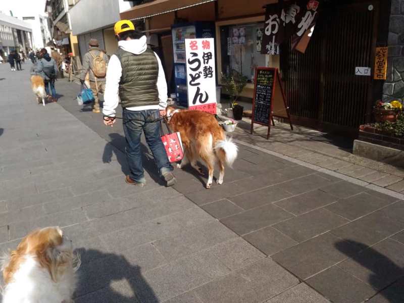 午前中に内宮参拝とおかげ横丁を楽しんだ御一行、さすがに連休の内宮はボルゾイたちの出番なし