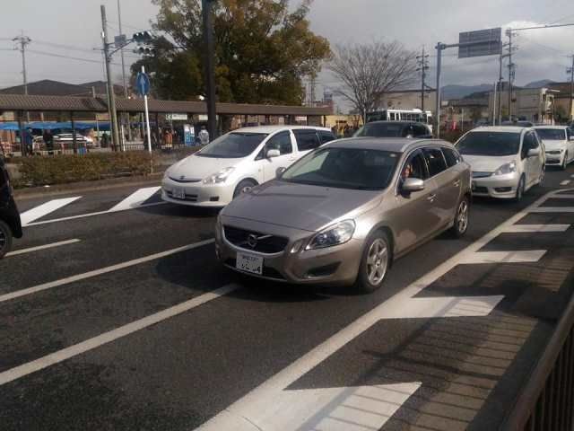 目の前の信号を団体の最終ノエル号が通り過ぎていきます
