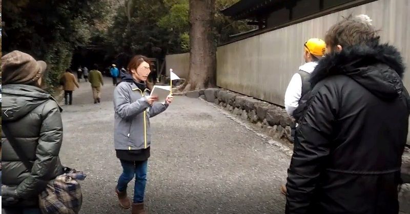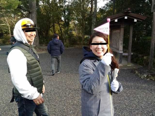 見事ガイドの座を射止め採用され、神宮を案内するロキママ