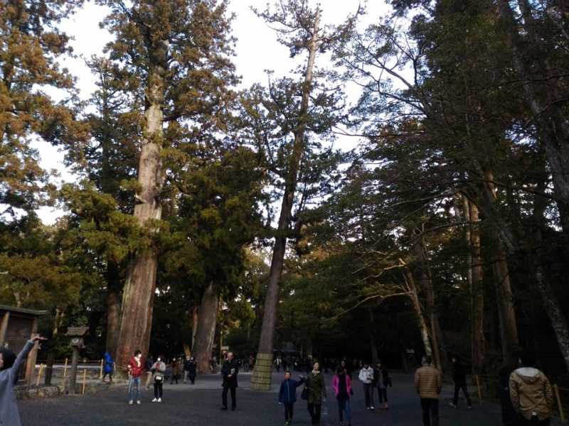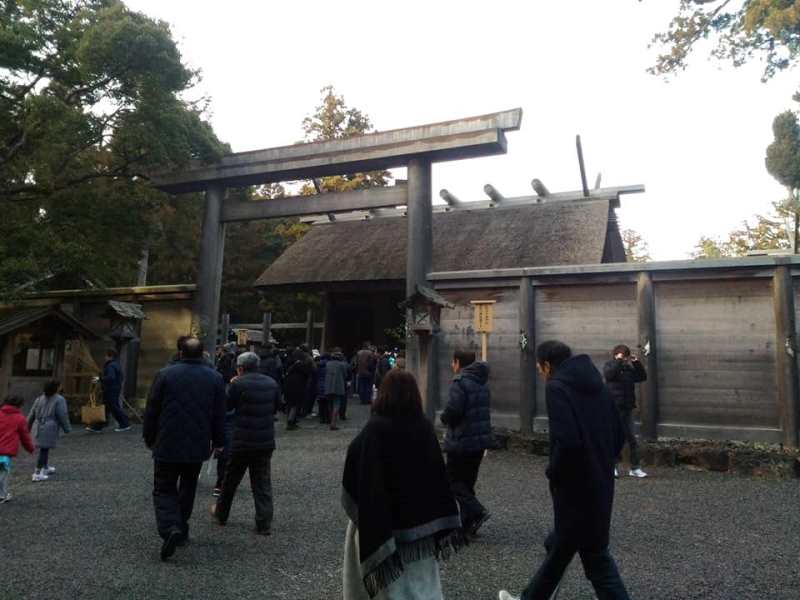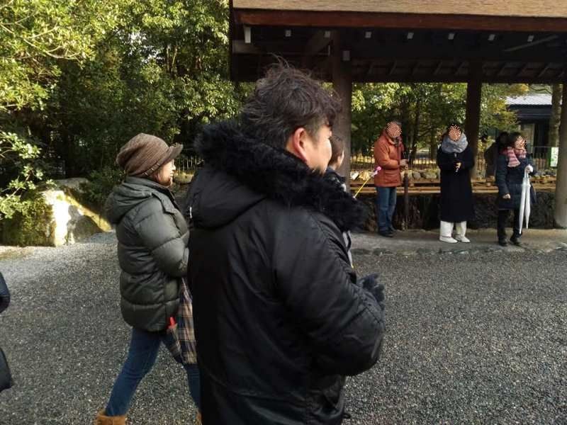 伊勢出身のショコタル夫婦が長野から採用されたガイドに説明されて外宮を行くのである
