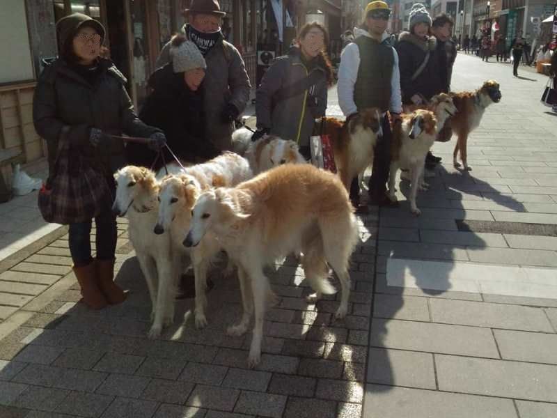 そして、やっと全員揃って外宮参道をボルゾイ8頭飼育係8人で珍道中の始まりです