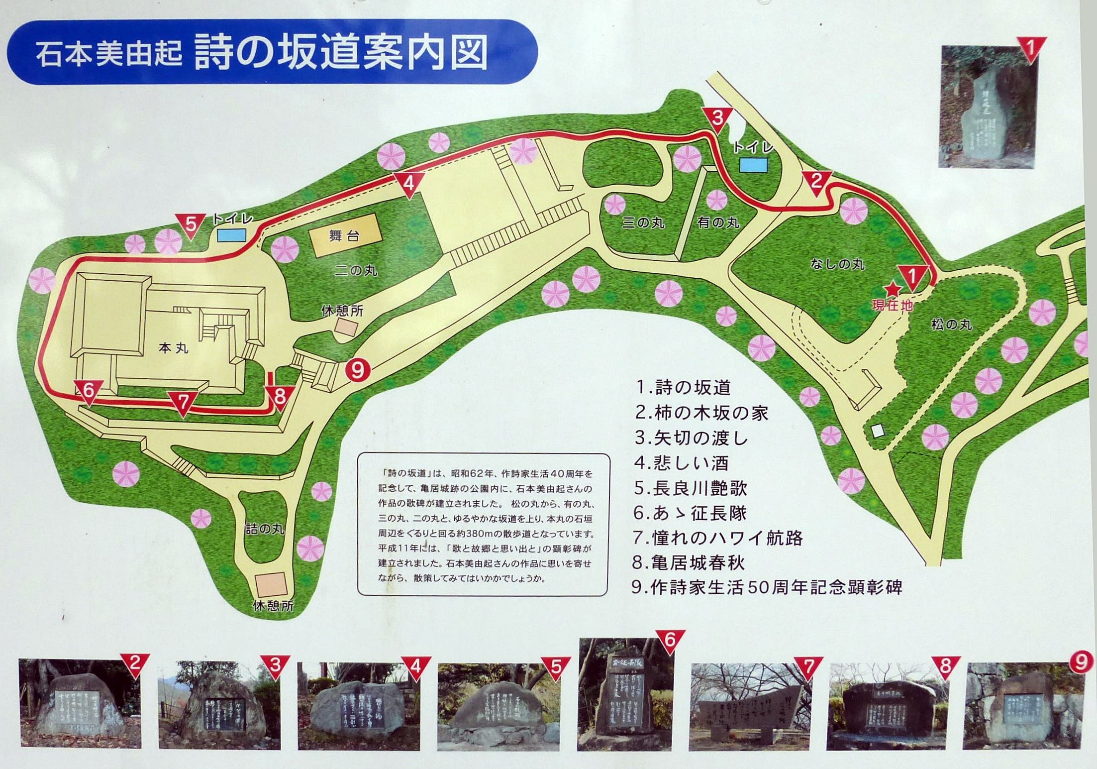 亀井城には,大竹市出身の有名な作詞家 石本美由紀さん(詳しくはココ)の歌碑が作られており,
