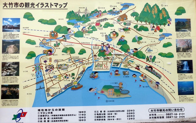 そこに,こんな大竹市の観光案内板があります。この写真はクリックすると大きくなります。