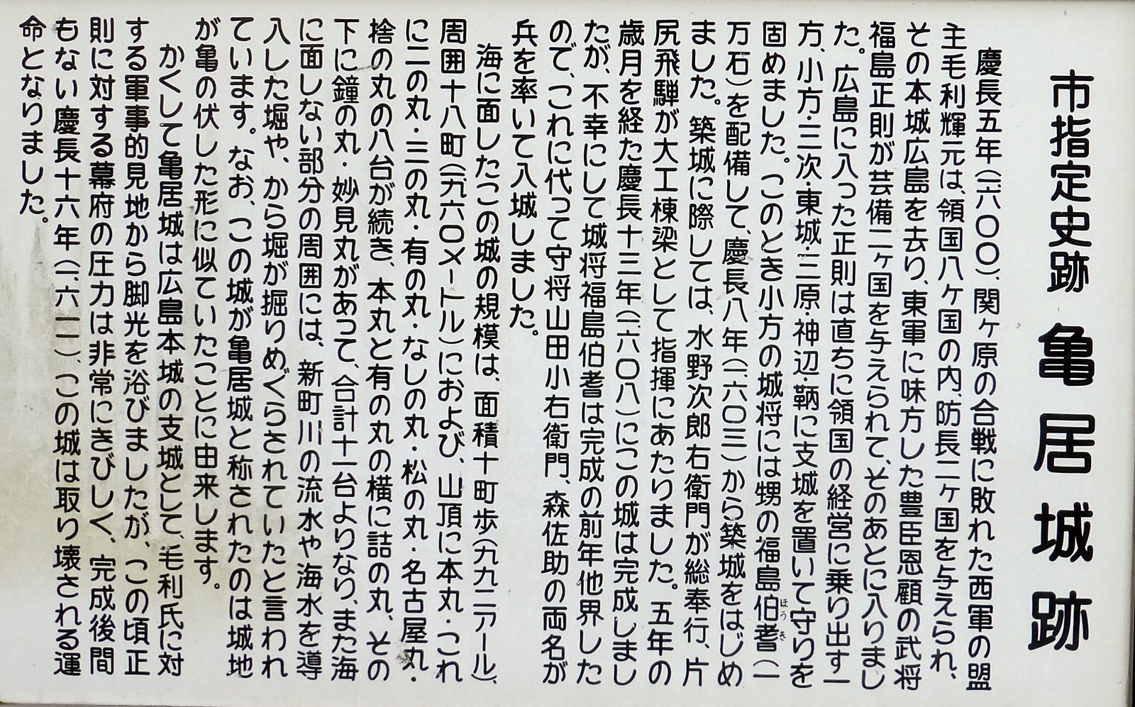 亀居城は,毛利家の支城でしたが,一国一城の令で取り壊されました。