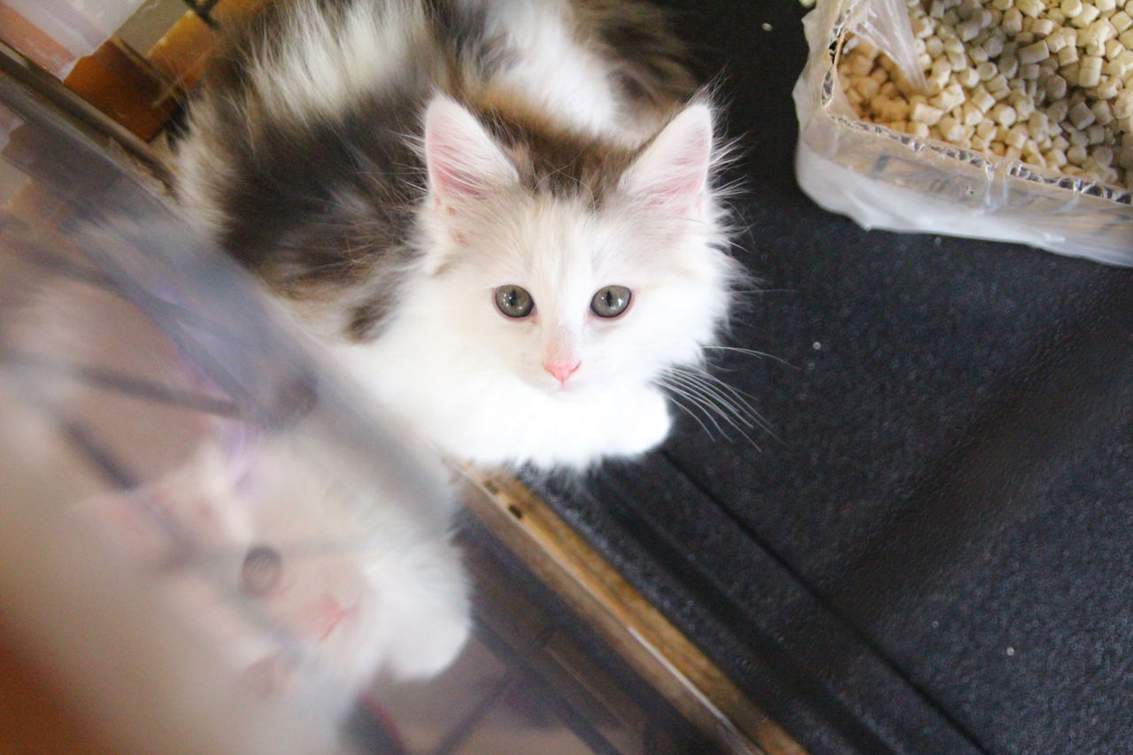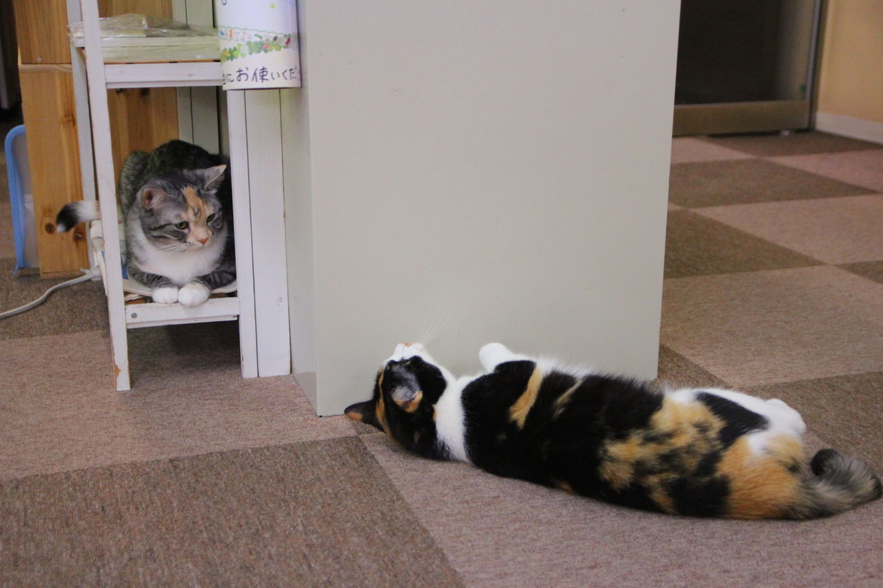 こちらはめいちゃんと茶々が写った何気ない写真なんですが、なんとも言えない二匹の距離感が好きです(笑)
