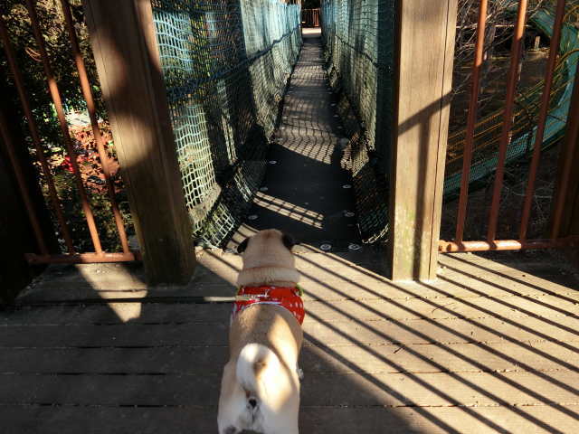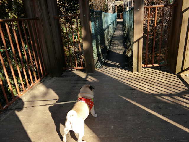 ご機嫌で向かった先は・・・ めちゃくちゃ揺れる大嫌いな吊り橋の前! まじですか!(゚ロ゚;) 2018年のはなちゃんすごい・・・ ドキ(((○゚゚艸゚゚○)))ドキ。 うん? 今日はやめとこって感じ。(_△_;〃