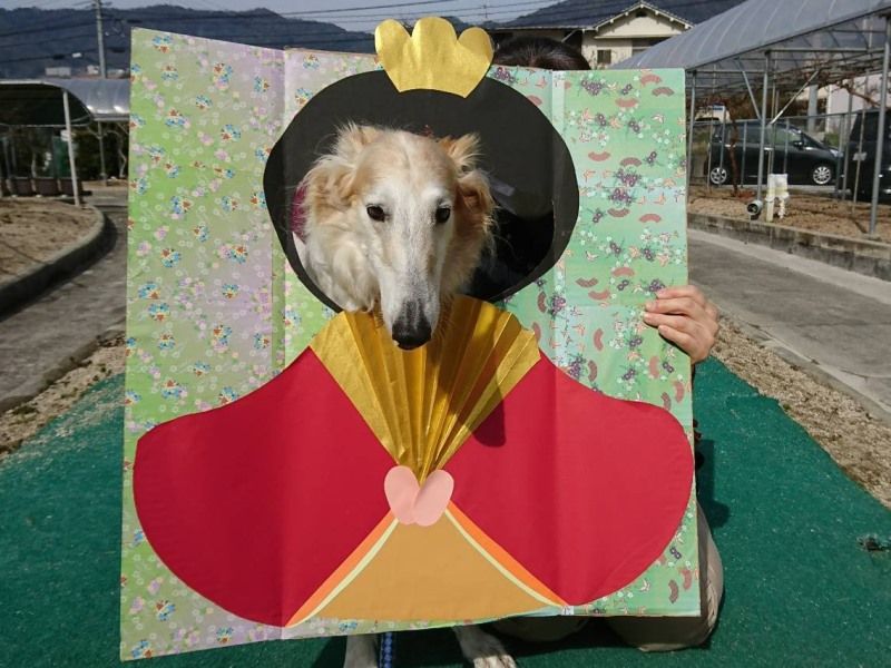 広島のりりさん、自作の顔出しパネルからのお雛様です