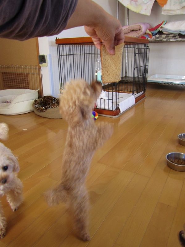 本当はあまり食べさせてはいけないんですが、皆が大好きな食パンをあげました。