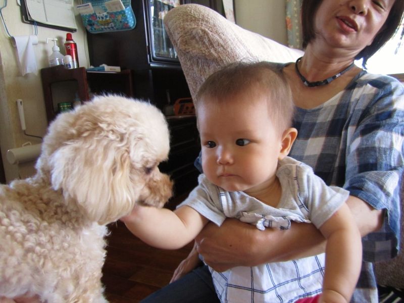私に抱っこされてないと、直ぐに「ヒャ~ヒャ~」泣く甘えさんです。