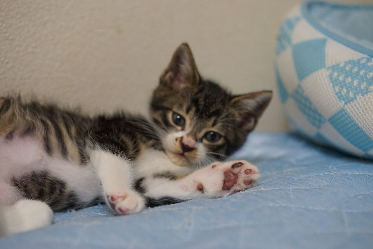 2015年6月に預かって里親様のもとへ巣立った保護子猫3兄弟のチョコ太くん(現・ハルくん)。