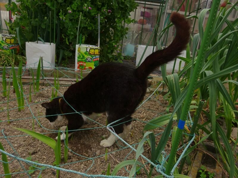 海苔網で防御した妻の花畑でも、へっちゃらでウンチしてます。